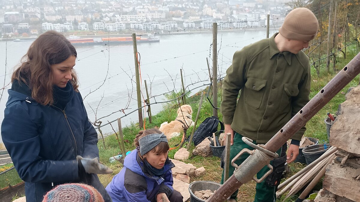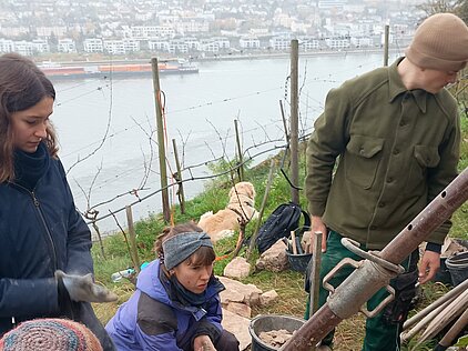 Wie fühlt es sich an, mehrere Tonnen Stein zu bewegen, eine historische Mauer Stein für Stein neu aufzubauen und dabei ein jahrhundertealtes Handwerk zu erlernen? Genau das konnten zehn Studierende verschiedener Studiengänge bei einem dreitägigen Trockenmauerkurs in der Rüdesheimer Terrassenlage „Krähennest“ erleben.