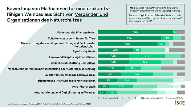 Weniger Zustimmung fanden hingegen bislang kaum umgesetzte Maßnahmen, wie Agro-Photovoltaik (Weinbau mit Solaranlagen) sowie Automatisierung und Digitalisierung.